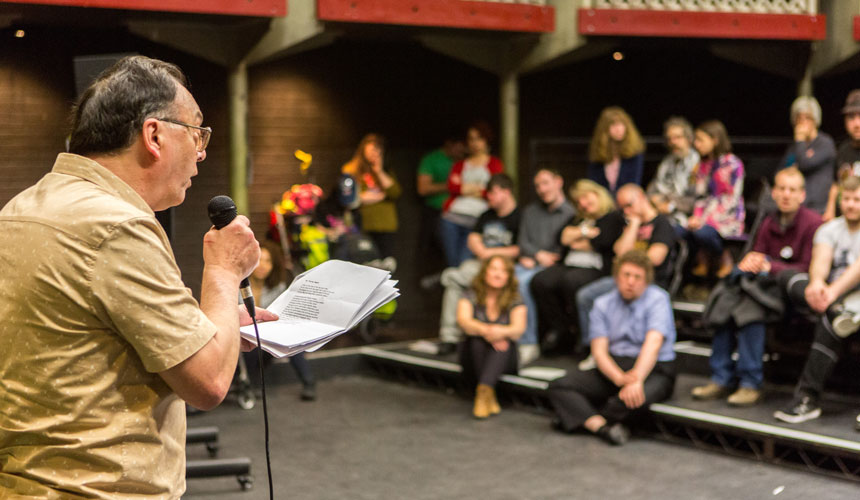 The event attracted over 80 attendees ranging from professional artists through to someone who had engaged in the arts for the very first time that day. The floor was ‘open to anyone’ to share their art. The event began with professional companies and high quality performances, which helped to set the tone. Contributions ranged from pre- prepared presentations, to sharing films of work, to poetry readings, beatbox, solo and group dances and more. Leading to a spontaneous group dance at the end of the event, followed by cake!